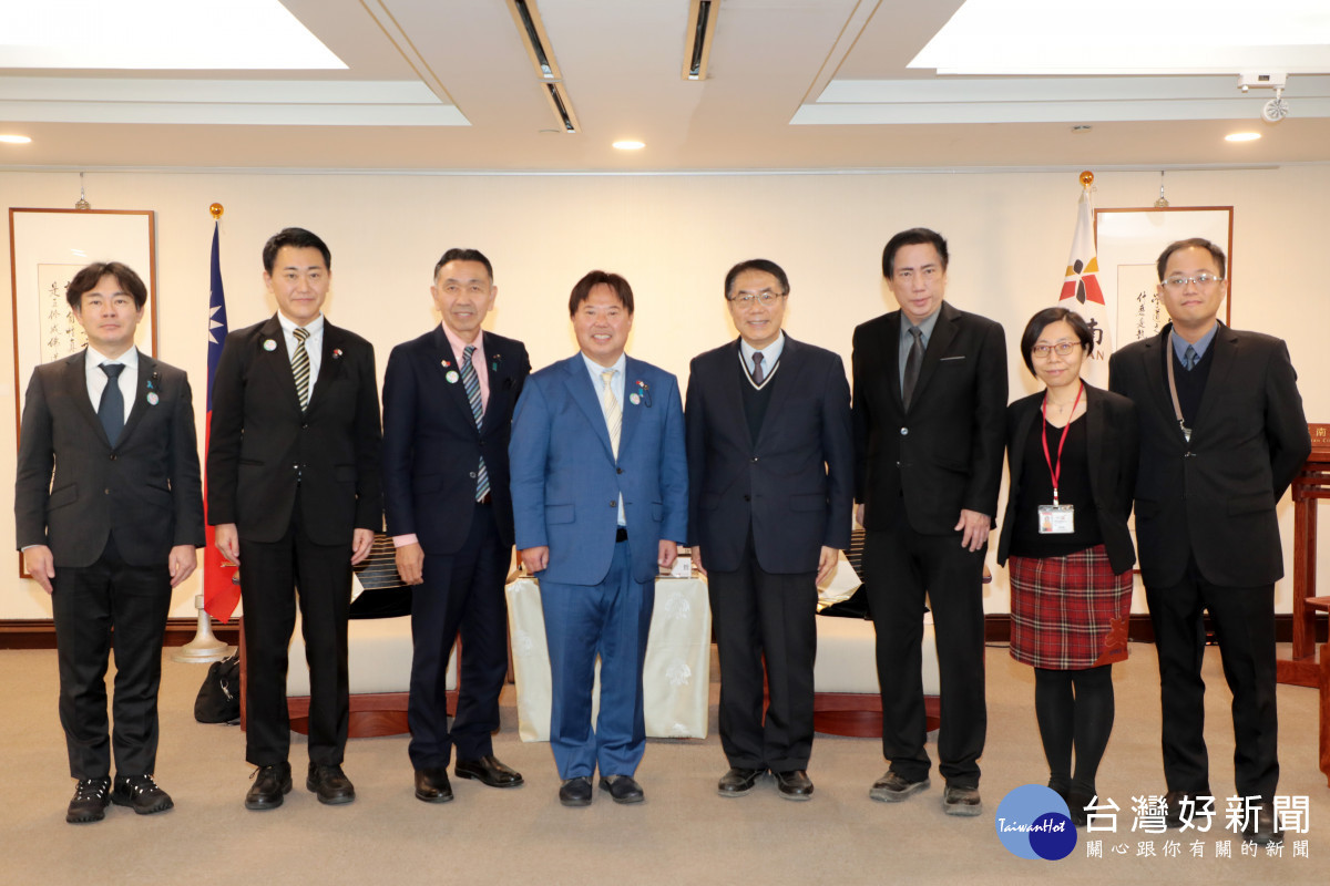 日本埼玉縣議會日台友好議員聯盟會長鈴木正人9日率梅澤佳一、新井豪、保谷武等議員一行4人,到市府拜會台南市長黃偉哲,雙方就政府數位化與防災經驗進行熱烈交流。