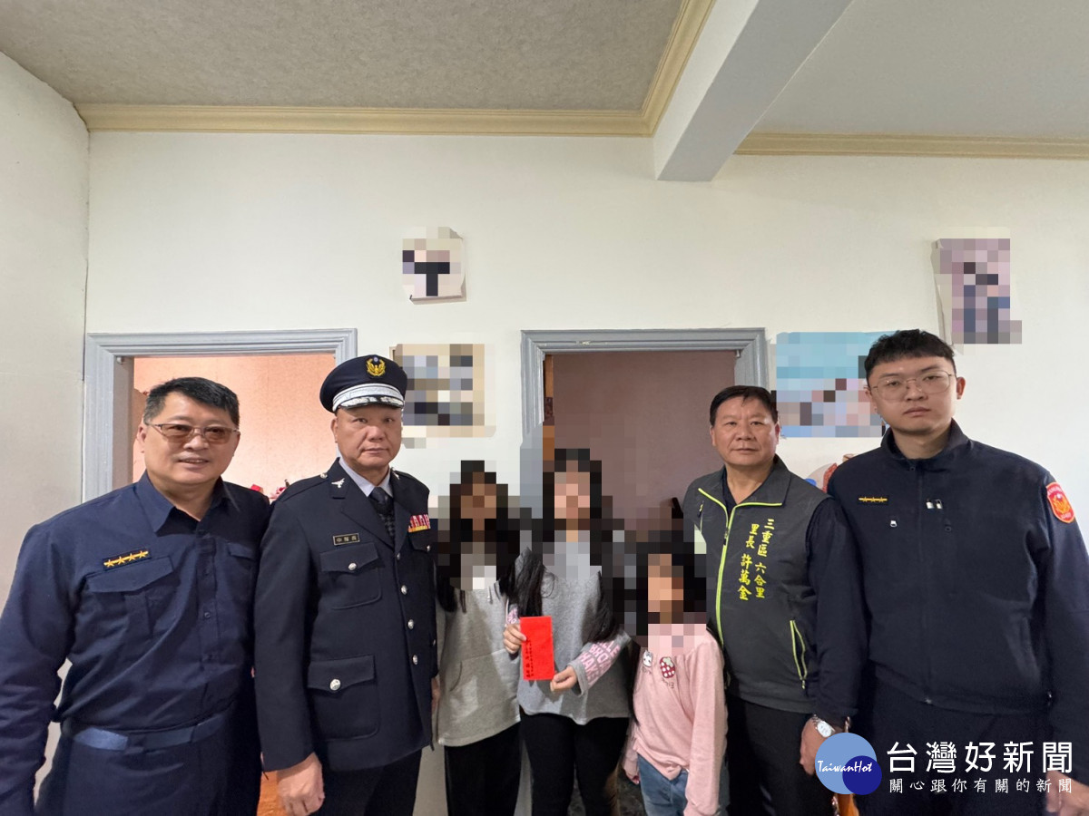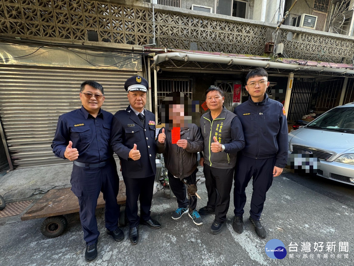 農曆年節將至,三重分局厚德派出所副所長鄭人綜、警員蕭博文,會同轄內六合里里長許萬金及三重義警中隊長許誥,攜手合作寒冬送暖,主動深入社區關懷轄內弱勢家庭,致贈春節慰問金,讓弱勢家庭在冷冽的冬天,感受到溫暖的人情味。