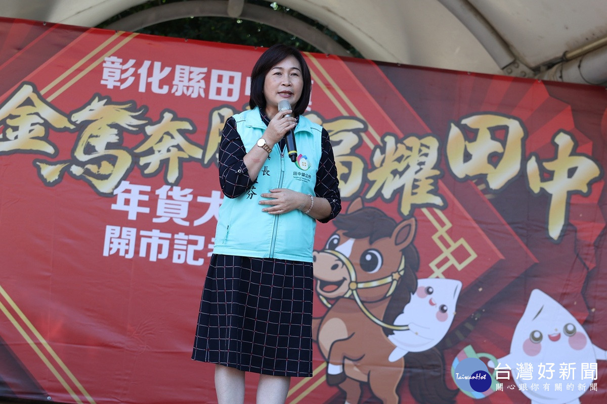彰化縣田中鎮公所於115年2月12日下午2點,在田中鎮米寶親子公園,辦理田中鎮「2026金馬奔騰 福耀田中~年貨大街」活動。今年年貨大街不但將抵用券紅包抽抽樂,由去年的25萬元加碼至30萬元,讓民眾在「馬年到來、馬上幸福」好運一整年。另外,現埸同步宣傳今年全新亮相的「米寶主燈」,可愛吸睛的造型搭配節慶燈飾,是親子拍照與打卡新亮點。