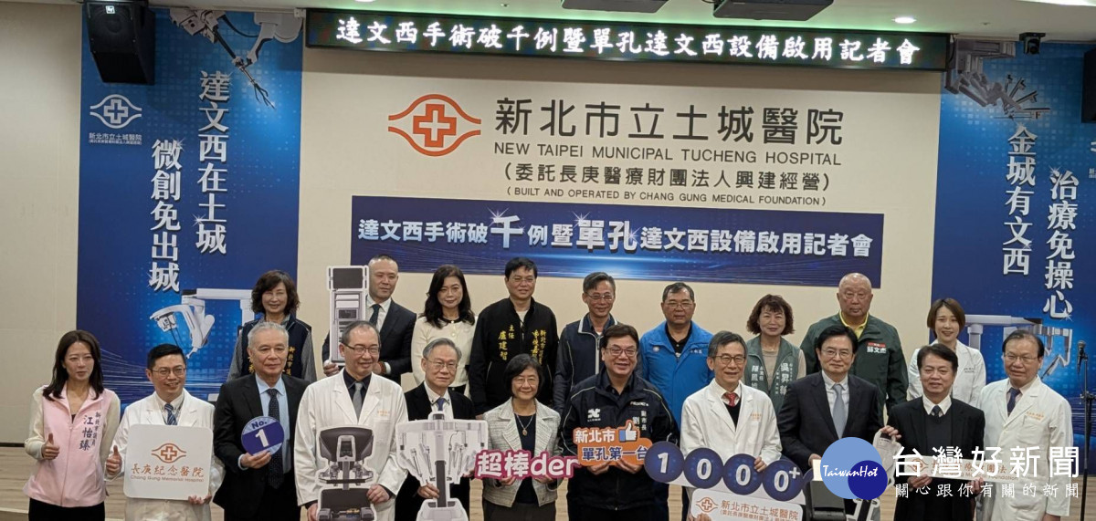 新北市立土城醫院今(13)日舉行達文西微創手術破千例暨新北市首座單孔達文西設備啟用記者會,新北市政府副市長劉和然出席見證市立醫院在智慧醫療與市民健康照護上的重要成果。土城醫院在短時間內突破千例達文西手術,充分彰顯新北市在高階醫療技術及整體醫療服務能量已躋身國際先進水準。