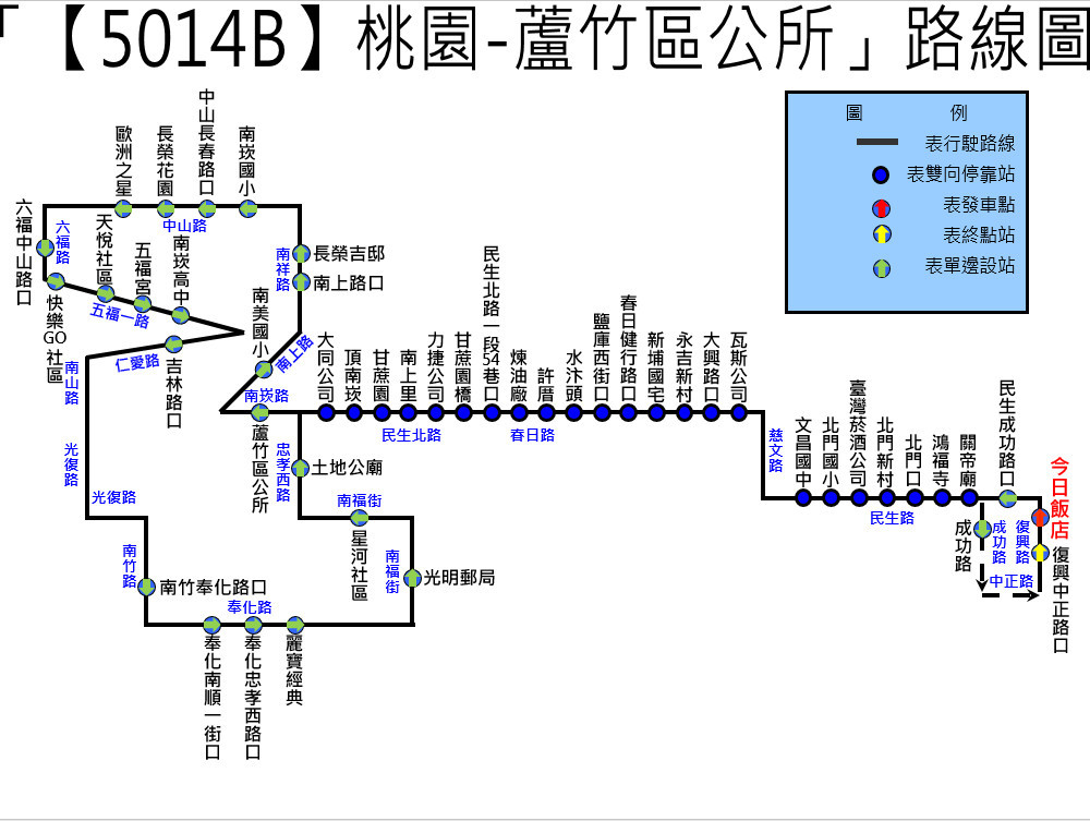 透過本次路線重整與支線增設,可有效銜接原「106桃園-南崁」路線停駛後的運輸需求,維持桃園至南崁地區既有公共運輸量能,並進一步強化桃園市區與蘆竹地區之交通連結。整併後【5014】主支線合計平日43班、假日33班,較原106路線平日24班、假日18班明顯提升;票價維持起程8公里18元、續程每公里2.58元,且適用市民卡基本里程8公里買一送一優惠及TPASS交通月票。