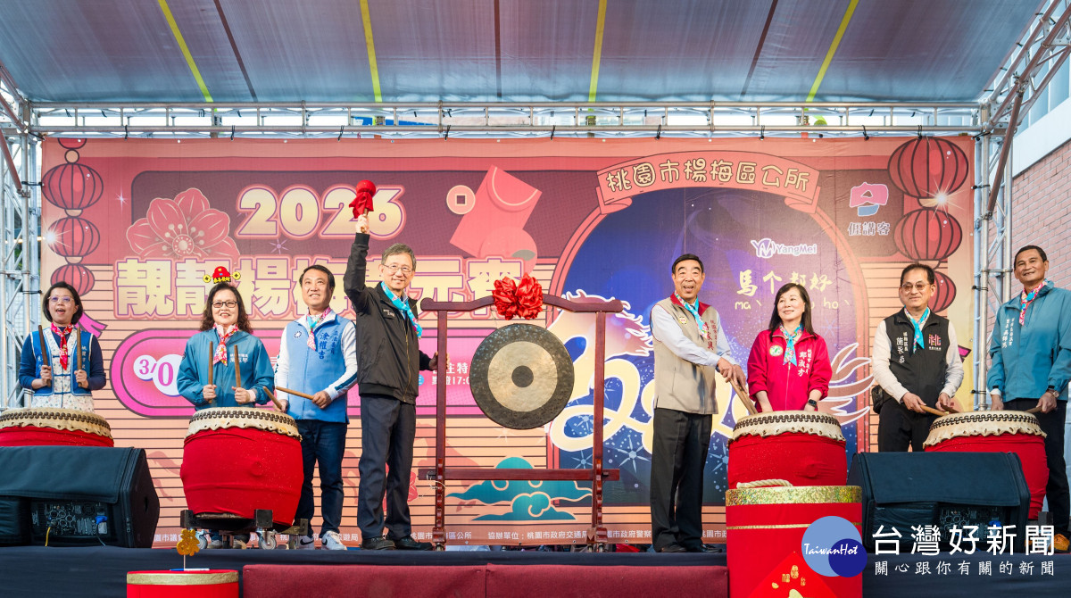 桃園市副市長王明鉅1日下午前往楊梅區,出席「2026靚靚楊梅慶元宵」踩街活動。王副市長表示,今(115)年元宵期間,楊梅、埔心及富岡三大車站同步設置燈區,展期長達半個月,整個楊梅洋溢濃厚節慶氛圍。而具有數十年歷史的踩街活動更是地方年度盛事,每年皆吸引大批民眾參與,今年亦不例外,誠摯邀請市民朋友走出家門賞燈踩街慶元宵。