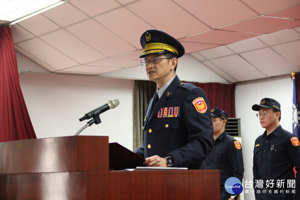 新莊分局長陳保緒在布達典禮中提醒「黑金槍毒詐」是當前警察工作的重點,勉勵新任主管,應秉持3M:團隊合作(team work)、相互關懷(family)、正向情緒(smile)以及3H:認真學習(study hard)、努力工作(work hard)、充分休閒(play hard)的理念,以團隊合作、正向引導的方式帶領同仁確實執行各項勤務。