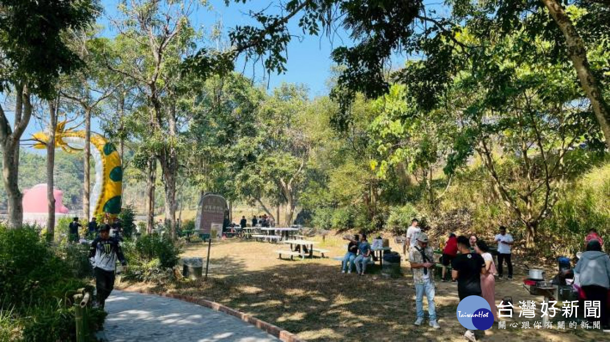 為慶祝虎頭埤風景區竹林烤肉區重新開放,園區推出多樣烤肉食材優惠活動,即日起至3月底,凡訂購「歡樂套餐」即贈送生蠔500g/盒及棉花糖10顆/份,訂購「悠活套餐」贈送雞腿排。同時為滿足更多遊客烤肉露營需求,於探索露營區內設置有烤肉爐架及臨時衛浴設備等,提供完善的服務設施。