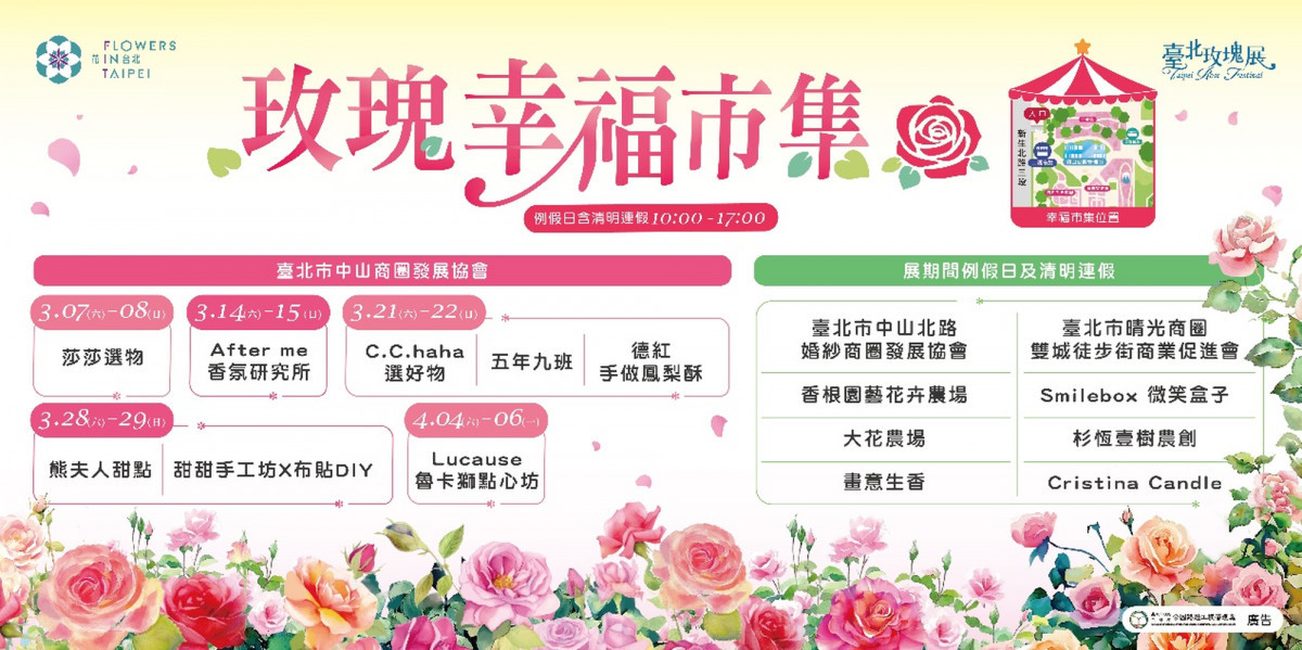 更多詳情請搜尋「臺北玫瑰園」臉書粉絲專頁或至「花IN台北」官方網站查詢。