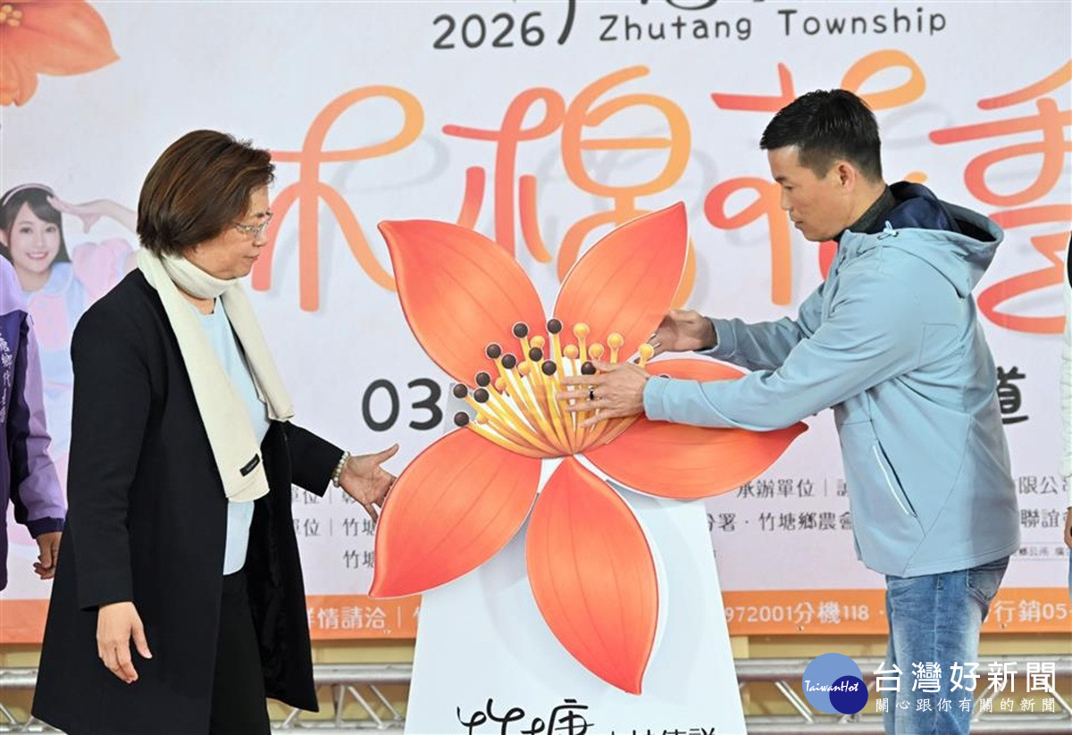 春意漸濃,彰化知名賞花景點「竹塘木棉花道」再度綻放橙紅花海。「2026竹塘鄉水神傳說木棉花季」將於3月21日上午登場,今(10)日上午舉辦活動宣傳記者會,彰化縣長王惠美、竹塘鄉長蔡碩任等人與會。活動結合賞花、趣味競賽與多元體驗,邀請全國民眾走進竹塘,在橙紅花海下感受農村春日風情。