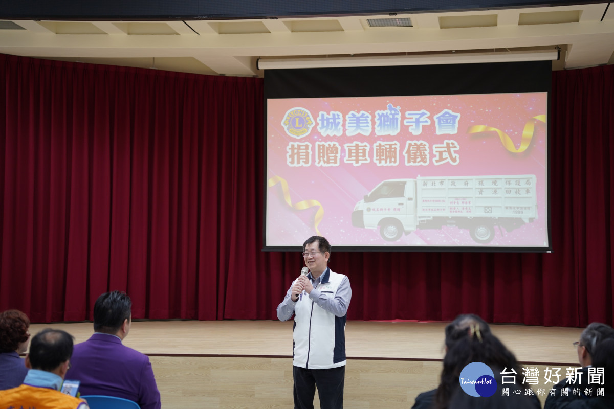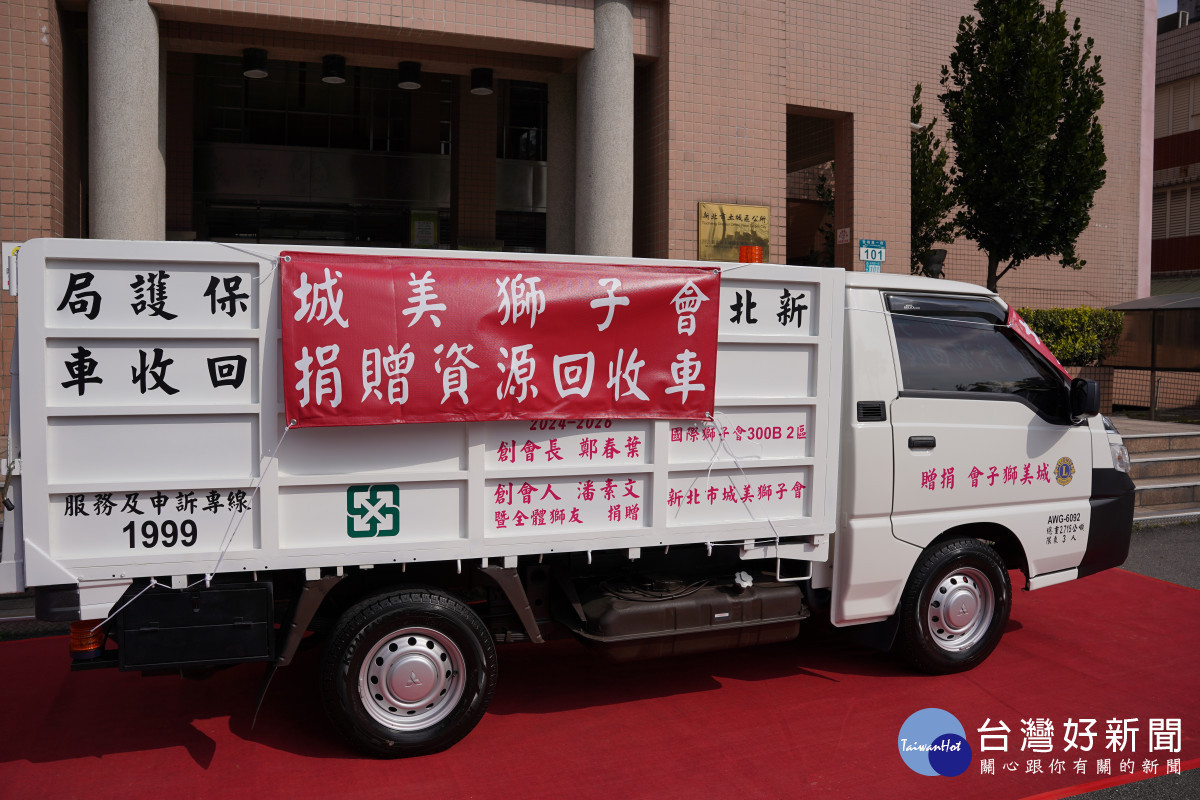 國際獅子會300B 2區新北市城美獅子會秉持「服務社會、回饋地方」精神,今(13)日捐贈新北市環保局土城區清潔隊1輛2.7噸資源回收車,在市議員林金結的積極促成下,已是獅子會捐贈給環保局的第4輛資源回收車,展現了關懷地方、支持第一線清潔同仁再添清運利器。