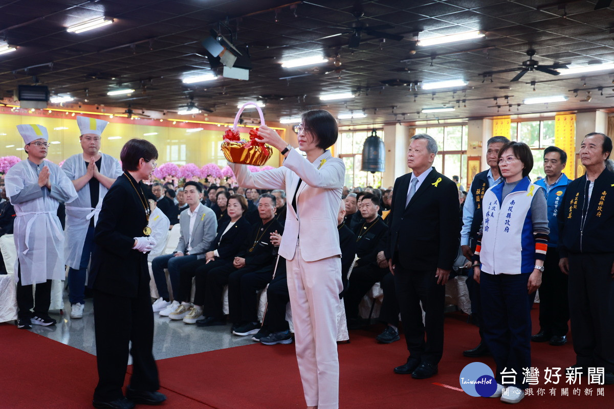 許淑華縣長在致詞中表示,混元禪師是社會上備受敬重的長輩,尤其在南投縣深耕多年,創辦易經大學,傳授易經風水學問,不僅指導世人如何營造安定環境,更舉辦多場法會,協助地方處理許多公共事務,對南投縣貢獻良多。