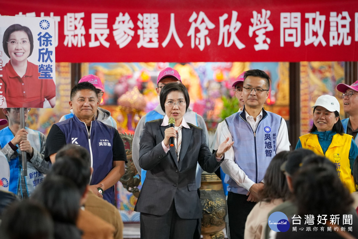 徐欣瑩說明過去擔任兩任議員、兩任立委,為地方爭取上百億預算。這次參選新竹縣長,就是為了守護新竹縣的陽光政治和國民黨改革火種。未來擔任縣長也要加碼照顧包含竹東、竹北的全縣鄉親長輩和年輕家庭,提出包含敬老愛心卡由500元加碼至1,000元,並開放生活消費使用;針對所得稅20%以下的 65歲以上長者,全面補助健保自負額;推動「AI遠距視訊醫療」與「AI醫療專車」,以打破城鄉醫療落差等務實政見。
