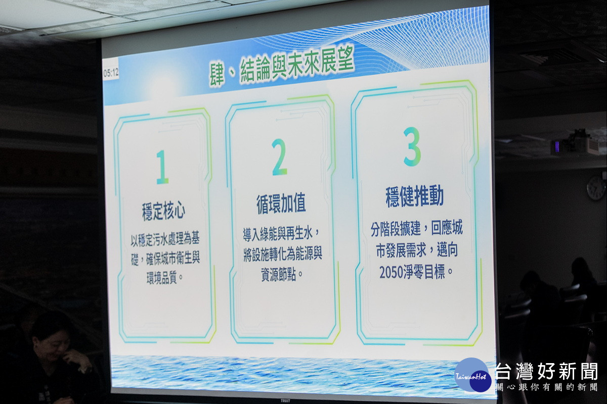 桃園市長張善政18日於市政會議中,聽取水務局「城市的隱形循環力-桃園水資源中心資源化報告」專題報告後表示,市府以「穩定污水處理為核心、資源循環為加值」為主軸,推動水資源回收中心轉型,結合再生水利用與綠能發電,打造兼具環境永續、能源效益與產業價值的關鍵基礎設施。張善政強調,水務局更以「打造永續放流水—節水減碳新農業」計畫於智慧城市展,榮獲創意應用獎肯定,展現桃園推動水資源再利用的具體成果。
