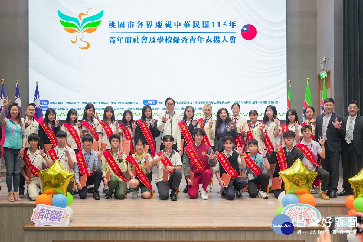 「桃園市115年青年節社會及學校優秀青年表揚大會」22日於桃園市政府青年事務局盛大登場,市長張善政與會表示,今日特別表揚中等學校及大專院校優秀青年,肯定受獎者在學業與專業領域的卓越表現,並期勉學子珍惜表揚的榮耀,持續發揮正面影響力,成為引領同世代進步的標竿,為桃園與國家開創更多無限可能。