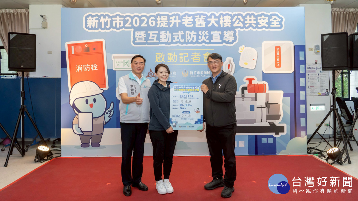 為提升老舊大樓火災防範能力,新竹市消防局持續推動「提升老舊大樓公共安全方案」,鼓勵住戶主動改善公共安全設施不足之處。今(115)年度進一步擴大補助範圍,2日由市長高虹安與消防局長李世恭一同前往龍群世家一期及麗法苑社區簽署補助核定書,展現市府強化居住安全決心。