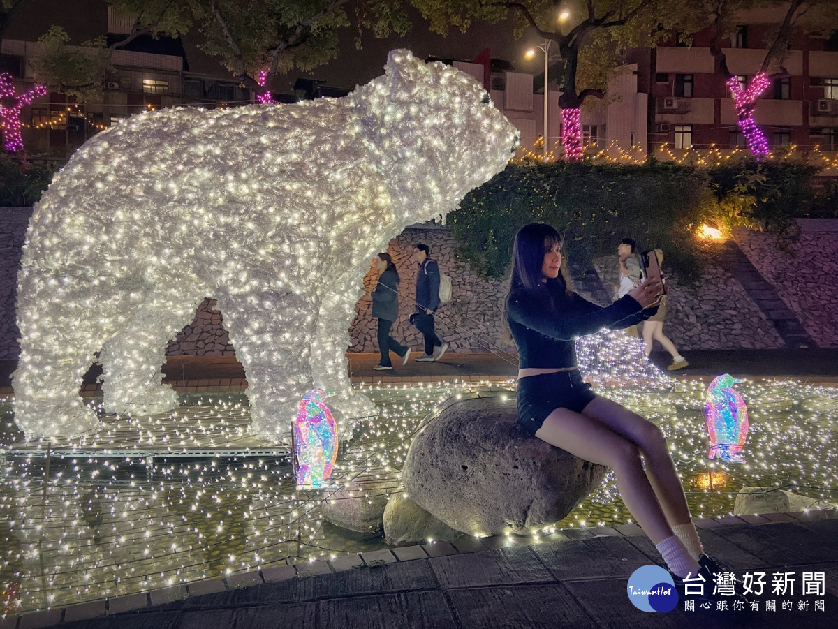 水利局表示,現場最吸睛的莫過於高達3公尺的「北極熊」,整點會落下的夢幻降雪,營造出濃厚的浪漫氣氛,讓大批民眾駐足拍照或攝影。不少民眾更發揮創意玩起「借位拍攝」,透過鏡頭角度與可愛的北極熊或極地企鵝驚喜互動,拍出許多療癒又逗趣的超萌合照。海洋區也被譽為台版潘朵拉星球,神祕的光影堆疊出如「阿凡達」般的科幻夢境。