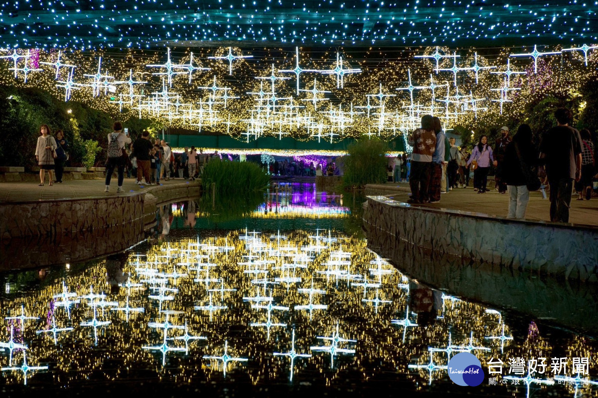 此外,河面上金光閃閃的大風車、繽紛星光隧道,以及極地企鵝等造景,搭配水面上的閃爍倒影,豐富的光影層次吸引大批攝影愛好者,都說為了捕捉這美景「真的要好好練夜拍」。河廊處處是驚喜,無論低頭捕捉水面星光或是抬頭欣賞夢幻造景,隨手拍都能拍出絕美大片。