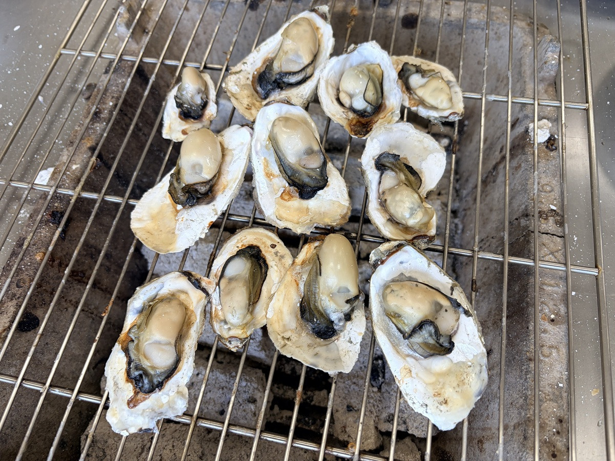 來自內蒙古呼倫貝爾草原的林琳,與曾在大陸工作的配偶洪章智結婚16年。隨著孩子出生,為了陪伴父母,夫妻倆返臺定居。初到臺灣時,臺語成為林琳最大的挑戰,生性開朗樂觀的她,選擇勇敢面對文化差異,加上公婆也會以國語溝通,讓她感受到家的溫暖,逐步融入在地生活。5年前夫妻倆以家鄉風味「蒙古烤串」創業,然而備料繁瑣、工序費時,人力負擔沉重,後來決定「靠海吃海」,以芳苑最具代表性的鮮蚵,轉型推出「烤蚵吃到飽」,讓顧客親自體驗現烤樂趣,並搭配快炒熱食,開創屬於自己的烤蚵人生。