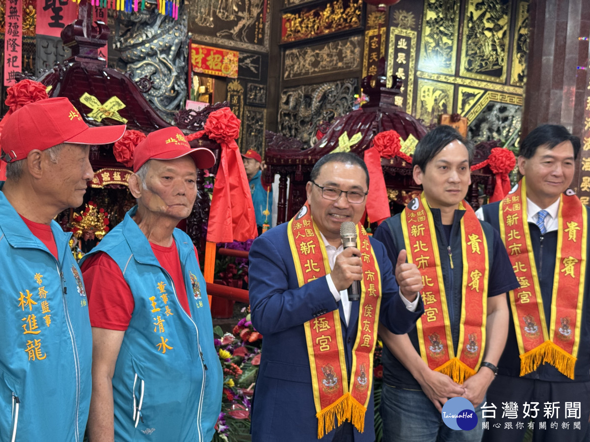 侯友宜表示,財團法人新北市北極宮是溪崑地區重要信仰中心,感謝董事長王清水帶領廟方長期投入急難救助與捐血活動,除預祝玄天上帝聖駕遶境圓滿順利,也祈求神明護佑信眾平安!