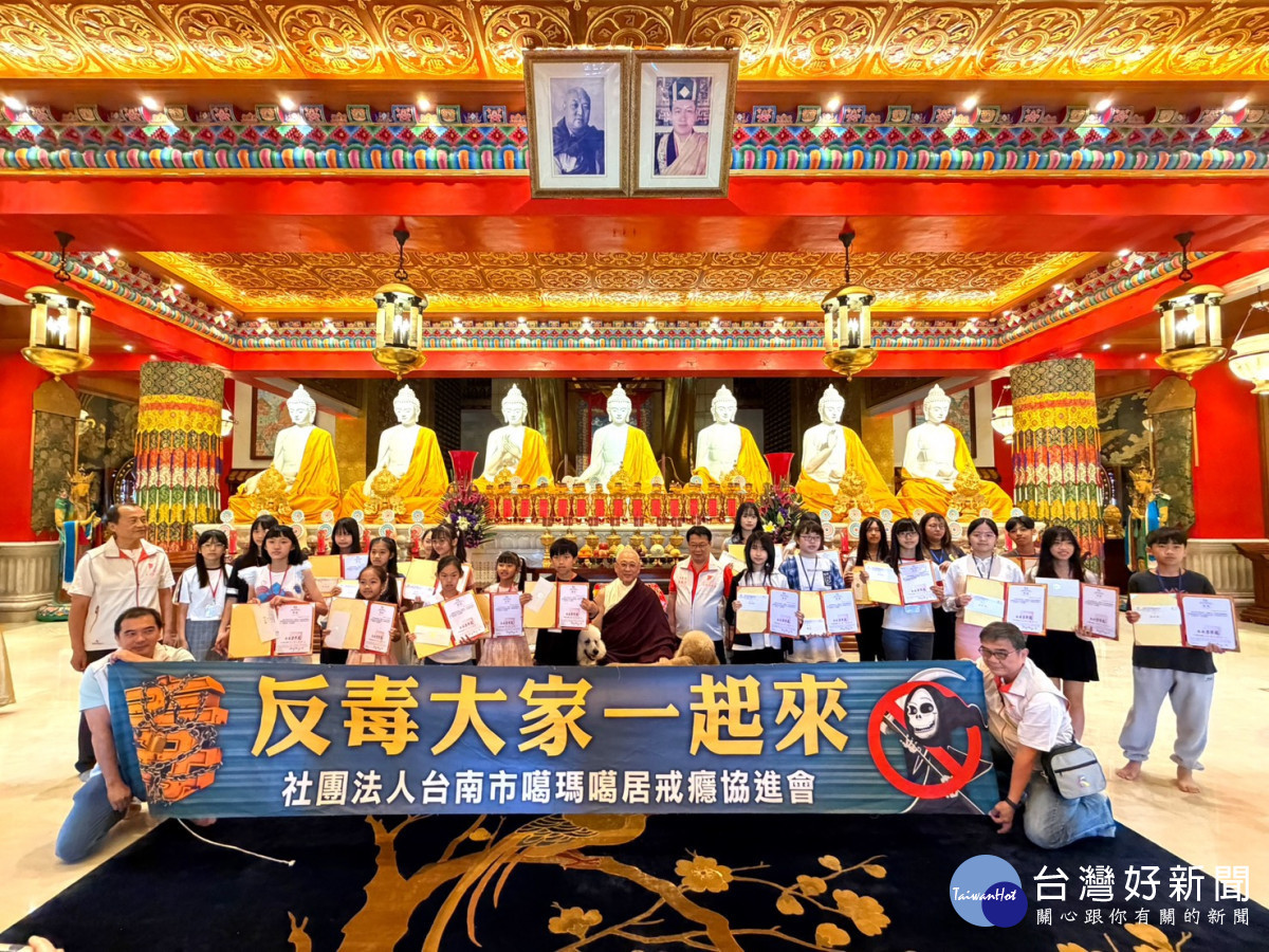 社團法人台南市噶瑪噶居寺戒癮協進會日前舉辦「反毒宣導繪畫比賽」,分為國小及國中組,26日並於左鎮噶居寺如來殿舉行頒獎典禮,協進會創辦人洛本天津仁波切及理事長李鏡清頒發獎金與獎狀,肯定獲獎學子作品色彩繽紛、以純真筆觸及創意描繪對「拒絕毒品、珍愛生命」的理解,更蘊含自我守護信念;會中也邀得獎孩子分享參與繪畫比賽心得。