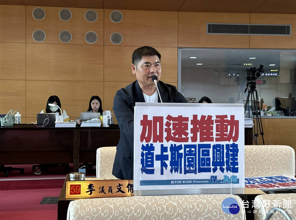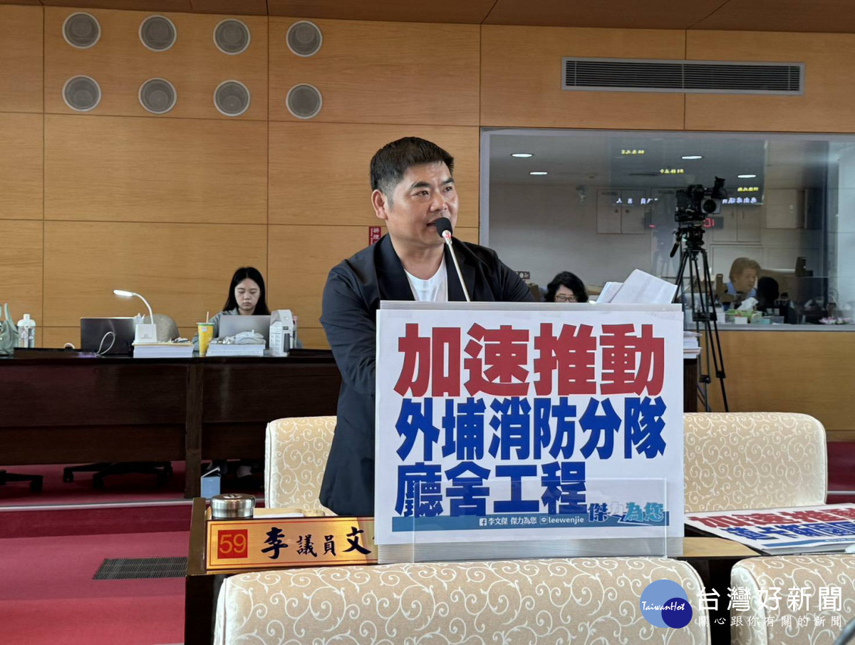 台中市議會定期大會警消環衛業務質詢,市議員李文傑關切道卡斯園區及外埔消防分隊新建工程的推動進度。
