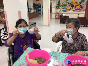 臺中榮總嘉義及灣橋分院護理之家,在端午佳節前夕特別安排活動,讓老勢大們親手來縫製應景的端午手工香包,提升長輩手部精細活動、手眼協調及上肢肌力的改善,並藉由為銀髮寶貝準備的五福寶袋,「五福」台...
