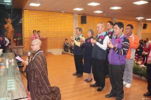 仁欽多吉波切(左五)一行為佛寺興建事宜到縣府拜會。(記者許素蘭/攝)