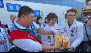 台中市第一選區立法委員候選人蔡壁如,九日在民眾黨議員簡千翔的陪同下,到南投市為國民黨的游顥掃街拜票,展現藍白合的氣勢,對游顥在中間與年輕選民選情上,帶來不少家分。在掃街過程中,蔡壁如看到趙少...