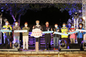 由桃園市政府環保局舉辦的「浪漫後湖溪-湖光月色水上音樂會」,23日晚間於新屋後湖溪盛大登場,在海浪、月光相伴,加上年輕知名樂團在湖中演唱,吸引許多民眾到場參加。桃園市副市長李憲明親蒞主持點燈...
