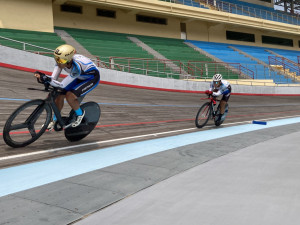 110年台中市主委盃暨全國運動會培訓測試賽19日在清水鰲峰山車場登場,因應防疫,採閉門賽模式,賽事邀集全台自由車菁英選手,包括東奧選手馮俊凱、2014釜山亞運金牌好手蕭美玉及康世峰等台中在地...