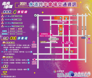 台中市政府舉辦的「犇向幸福!2021台中跨年狂歡夜」,將於12月31日7時在水湳中央公園、大里仁化公園同步開唱。因應跨年晚會人潮,水湳中央公園規劃4條免費接駁路線及5處汽、機車停車場,大里仁...