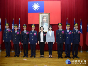 南投縣新任分局長26日下午佈達交接。(記者扶小萍攝)