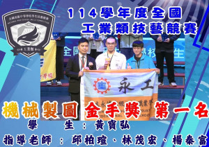 彰化縣永靖高工學生參加114學年全國高級中等學校工業類技藝競賽,奪得4座金手獎及2項優勝,表現優異。永靖高工得獎職種同學分別是機械製圖金手獎第一名:黃寶弘同學。電腦輔助機械製圖金手獎第三名:蘇宗和同學。室內空間設計金...