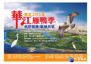 臺北市動物保護處與萬華區華江社區發展協會共同舉辦的「2018臺北華江雁鴨季」,將在12月8至9日於華江雁鴨自然公園熱鬧登場,為今年候鳥季拉開序幕。今年活動不僅有精彩的舞台表演及豐富多元的園遊...