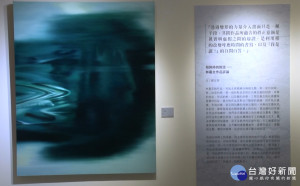 因受電擊成殘的口足畫家林宥辰,不向命運低頭,努力用口足繪畫有成,成品在大甲高工藝文中心展示個展,值得各界前往觀賞。(記者陳榮昌攝)