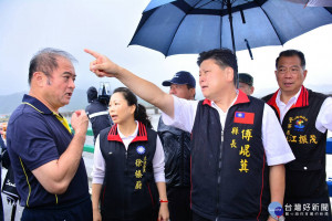 朱立倫市長召開泰利颱風第2次工作會報後,隨即率相關單位首長前往萬里、瑞芳視察復建及疏濬工程。(圖/記者黃村杉攝)