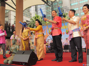 新北市政府勞工局與泰國貿易經濟辦事處,23日共同舉辦「新北市第7屆泰國藤球友誼賽暨潑水節」,活動於23日上午9時在新北市政府市民廣場登場,現場除了有精采絕倫的藤球比賽,還結合泰國新年傳統潑水...