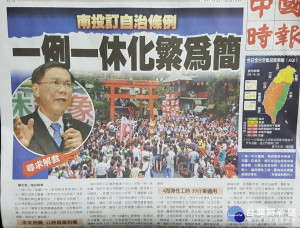 0509讀報/中時:南投訂自治條例 一例一休化繁為簡
