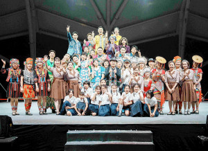 東陽國小招待南瀛國際民俗藝術節友誼單位印尼雅加達的卡都里斯堤瓦舞團,歡迎合影。(記者邱仁武/攝)