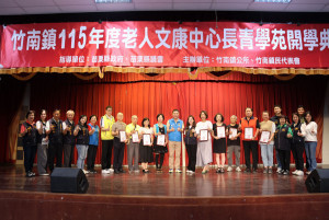 今年竹南鎮長青學苑開課地點拓展至14處,4月17日於竹興老人文康中心辦理開學典禮,縣長鍾東錦頒發課程講師聘書及志工感謝狀,感謝各單位的協助及據點夥伴的付出,期待長者們都能學習到多元的新事物,而竹南鎮在縣府及各級民意代...