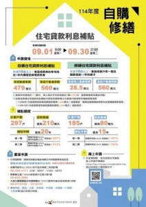 好房網News記者王惠琳/綜合報導   內政部自購住宅貸款利息補貼及修繕住宅貸款利息補貼將於114年9月1日至9月30日受理申請,符合資格者享有優惠利率。設籍台南市有購屋...
