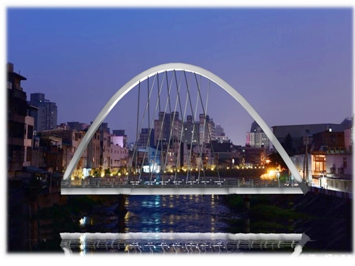 鄭市長說,新建南通橋採用「斜跨單拱肋鋼拱橋」,橋樑底部提高76公分,橋面由6.3公尺拓寬至9.5公尺,設置雙線道及人行步道,加上照明設計,兼具防洪、交通及景觀等功能,預計將在106年7月完工。