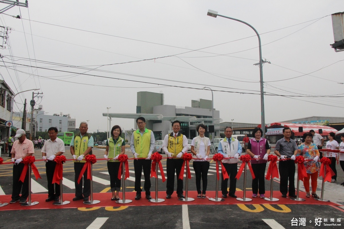 麻豆轉運站東北隅聯外道路落成啟用通車典禮,由副市長顏純左(中)主持正式落成啟用。