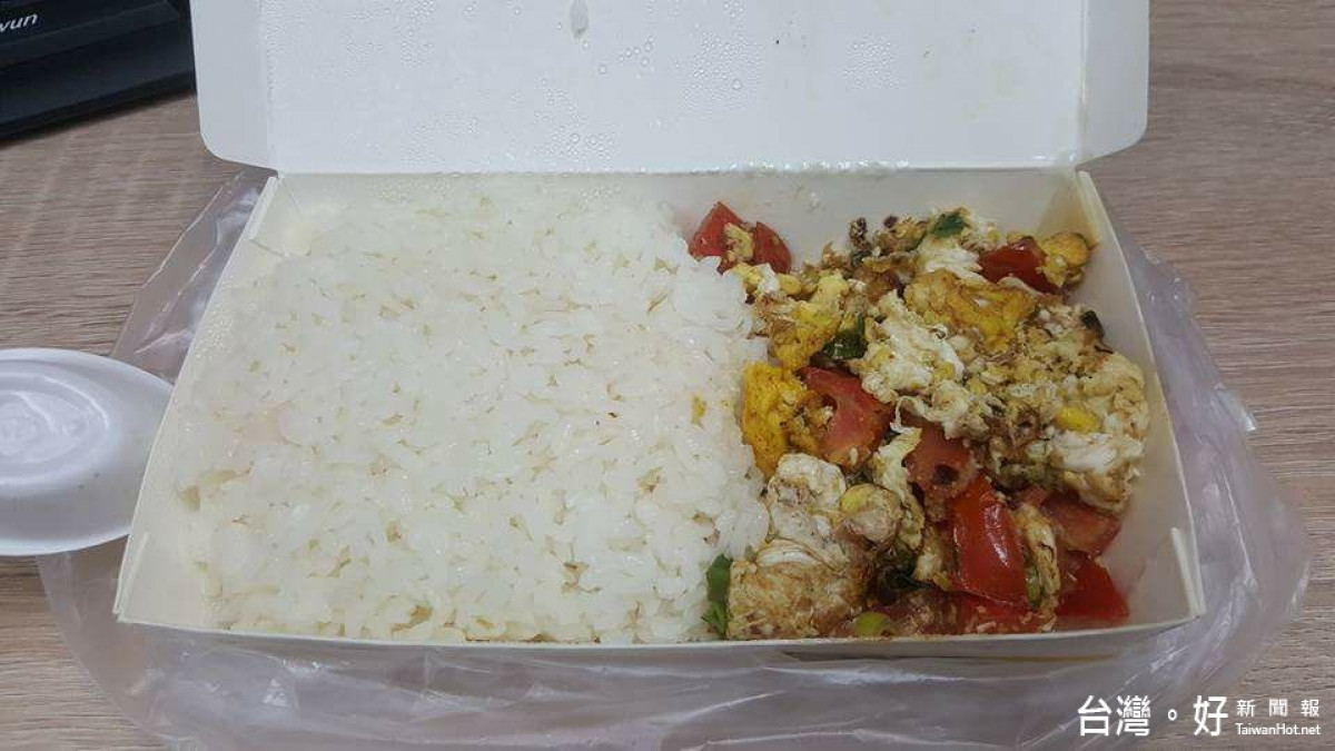 該名網友表示,她回家打開飯盒,發現店家所謂的「番茄蛋炒飯」,竟是一半的白飯,另外配上一半的番茄炒蛋。因此她也在「爆料公社」上大罵「踏馬的番茄蛋炒飯,欺騙社會大眾,還60塊!」。