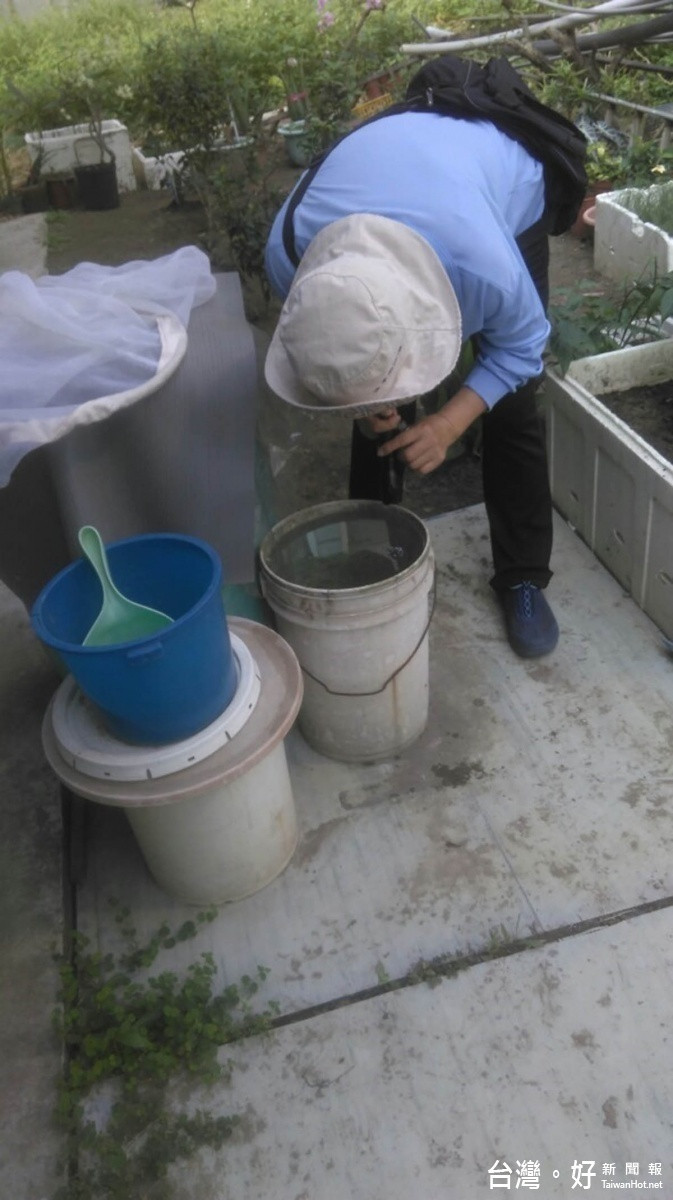 ▲防疫人員採集積水內的登革熱病媒蚊幼蟲。(圖/高雄巿政府衛生局提供)