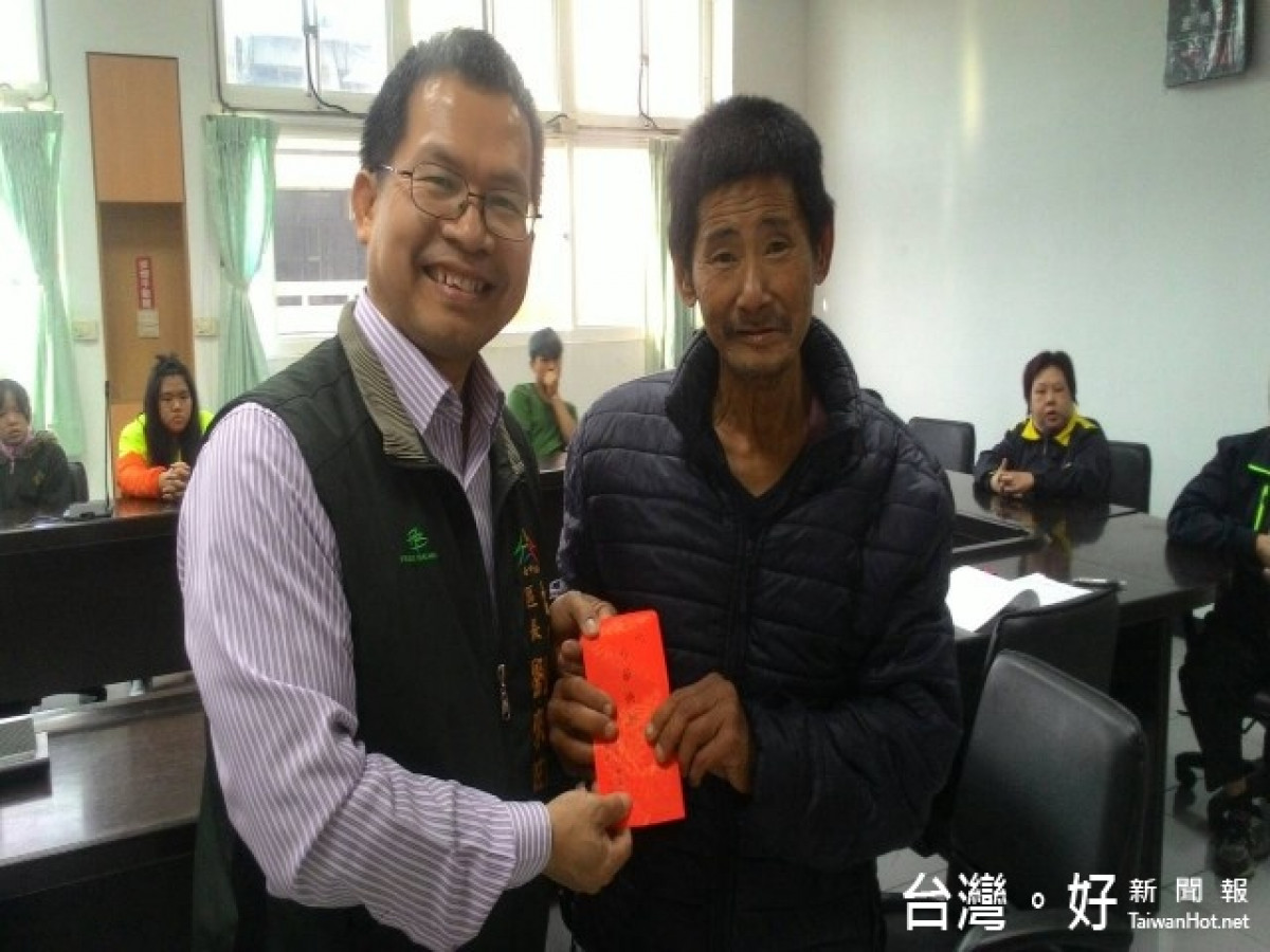 大甲區長劉來旺十九日分贈二十一位邊緣戶各八千元,做為過農曆年 買食材吃團圓費用,受惠家庭感謝聲不斷,場面溫馨。(記者陳榮昌 攝)