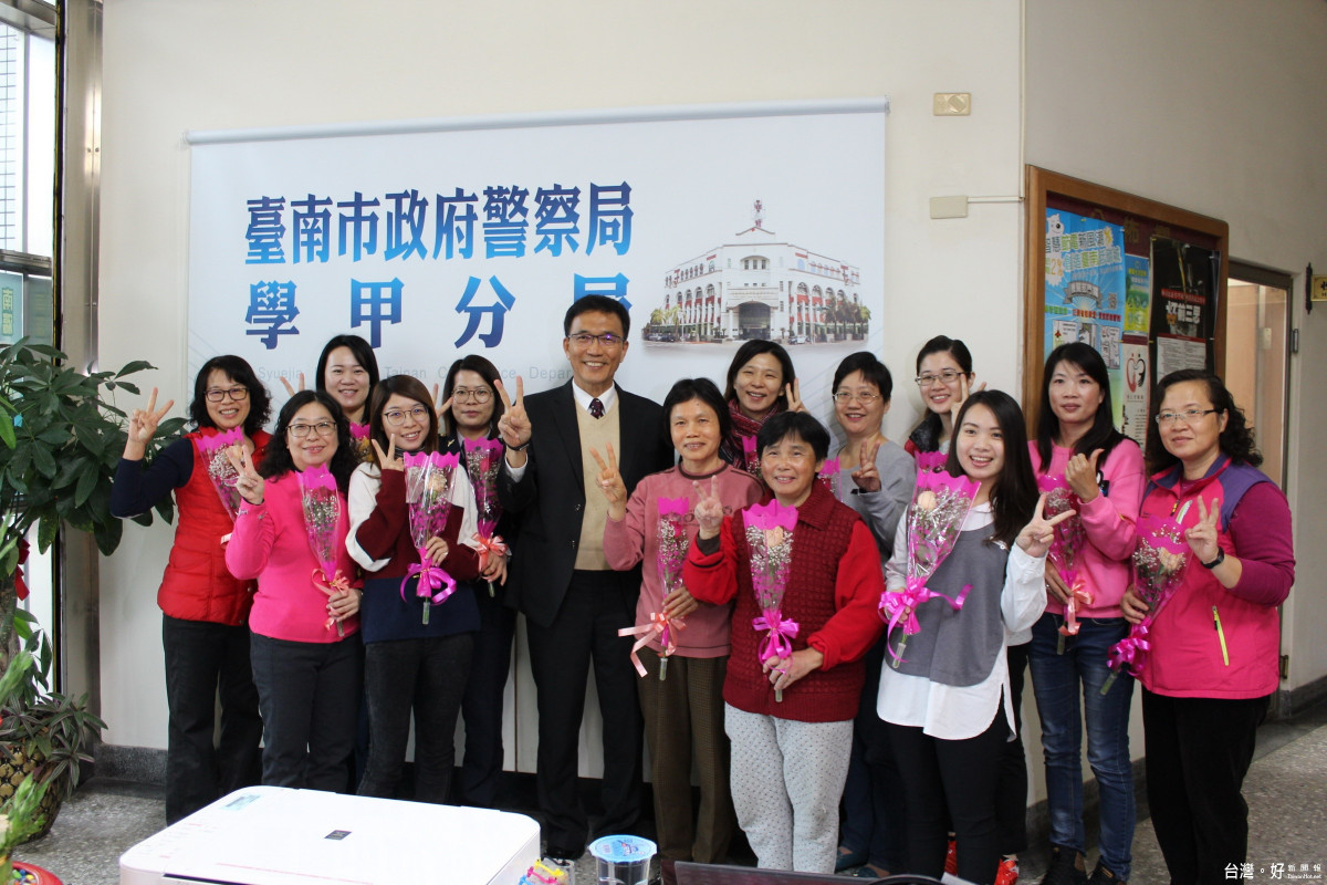 今天3月8日國際婦女節,學甲警分局長楊青垂一大早到各辦公處所,向15位女性工作夥伴致贈「紫色玫瑰花」,祝賀38婦女節快樂,表達謝意,感謝她們長年辛勞對警政工作的付出,場面溫馨。