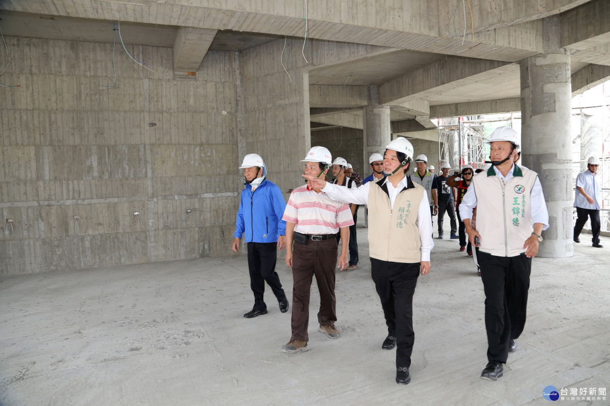 全國首件由地方催生,引頸期盼10年的台江文化中心,自104年12月開工迄今,目前已陸續完成地下室停車場、圖書館、舞蹈教室、排練場等空間結構體,並進行到地上三層結構體,工程實際完成進度達39.21%,超前預定進度8.25%。賴清德市長30日前往工地視察,聽取施工單位簡報,關心台江文化中心興建工程施工情形,各級民代、里長等地方人士代表皆應邀陪同。