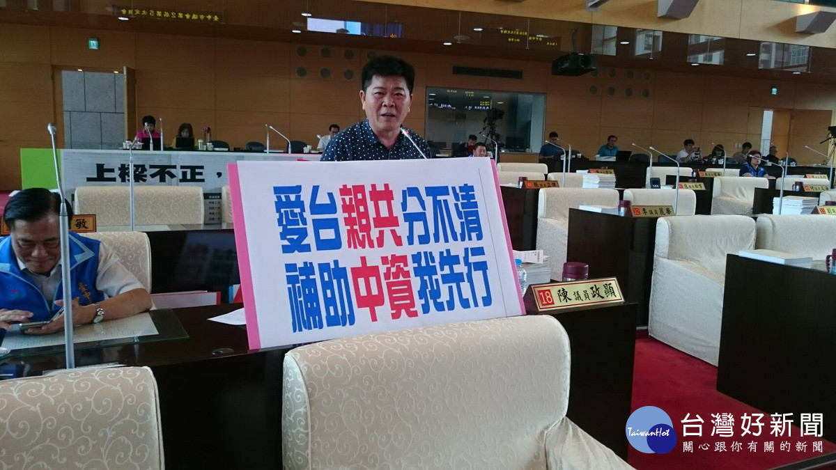 國民黨市議員陳政顯則嘲諷林市府最愛台、但分不清什麼是愛台?什麼是親共?陳政顯指出,市長過去2年多都沒有去大陸,但是最近他看到一份資料嚇一大跳,原來林佳龍已偷偷派新聞局去跟大陸合作了?新聞局有一筆補助中資電影西遊記三的拍攝,不只親中而已。