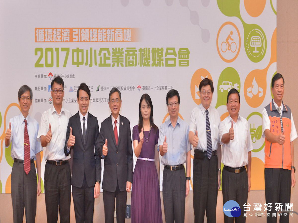 為鼓勵中小企業增進符合「循環經濟」效益的創新研發與結盟合作,經濟部中小企業處第6年與台南市工商發展投資策進會攜手合作,以「循環經濟引領綠能新商機」為題,舉辦「2017中小企業商機媒合會(台南場)」;經濟部中小企業處副處長蘇文玲、台南市副市長吳宗榮等人都到場,一同見證臺灣企業發展循環經濟的創新與創意實力。