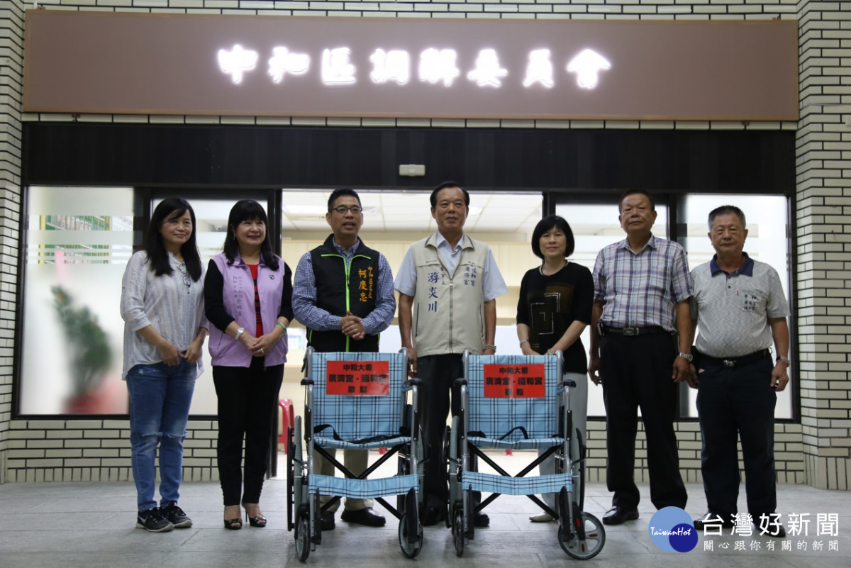 中和大廟(廣濟宮及福和宮)有感於行動不便者及長者到公所辦事和參與調解時不便,因此捐贈中和區公所2台輪椅做公益,盼提升更友善之無障礙環境。