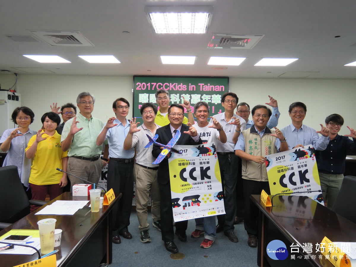 「CCKids 2017 in Tainan 嘻嘻玩科普 嘉年華」10月28日上午10點起,將在台南市政府6500坪草皮廣場盛大開幕,不限年齡完全免費入場。主辦單位期望透過CCK鼓勵學生擁有更多可能性,充滿好奇、創意、勇敢實驗的精神。