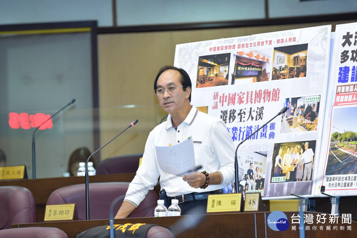 延續木藝傳承助觀光,市議員李柏坊爭取文化局地下室的中國家具博物館遷至大溪。(圖/桃園市議會提供)